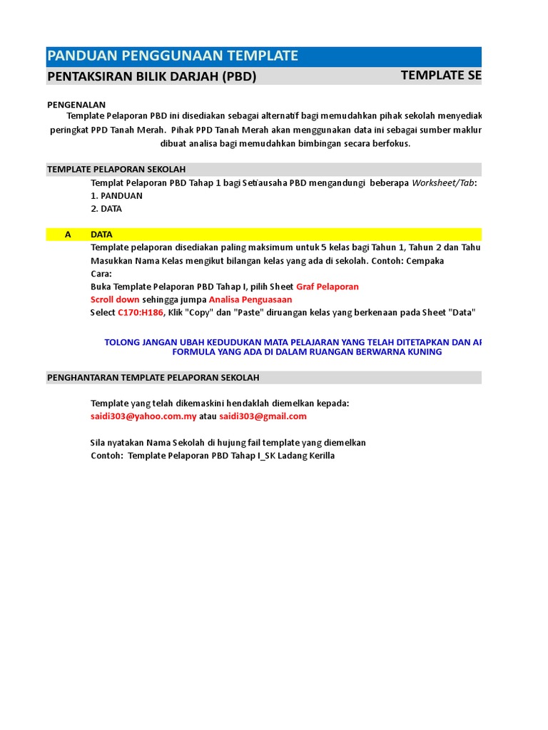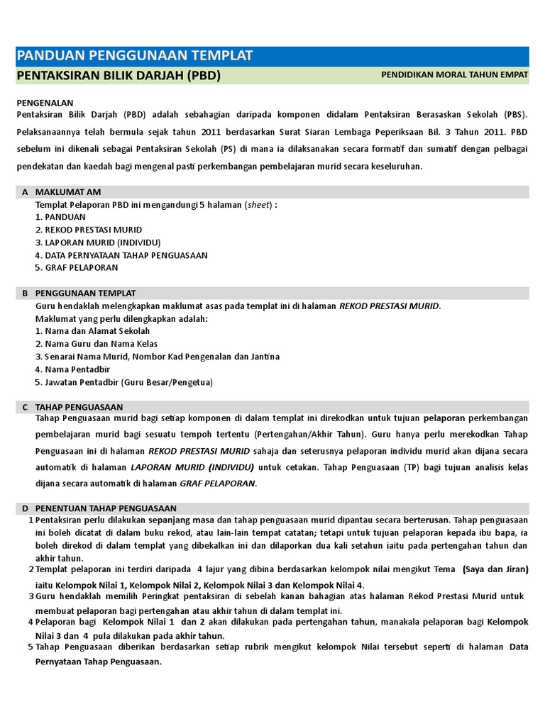 Template Pelaporan Pbd Tahap I Sekolah 1 Jun 2019 Pdf